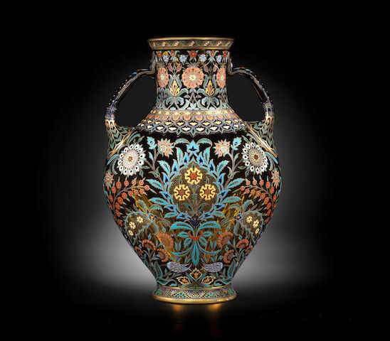 Ваза с двумя ручками в персидском стиле, украшенная эмалью и позолотой, высота 32,3 см, J. & L. LOBMEYR, конец XIX века
