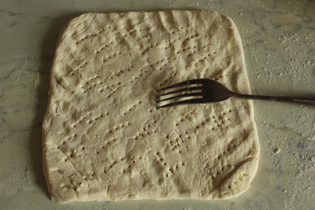 Выложить тесто поверх овощей и слегка защипнуть края к стенкам формы.