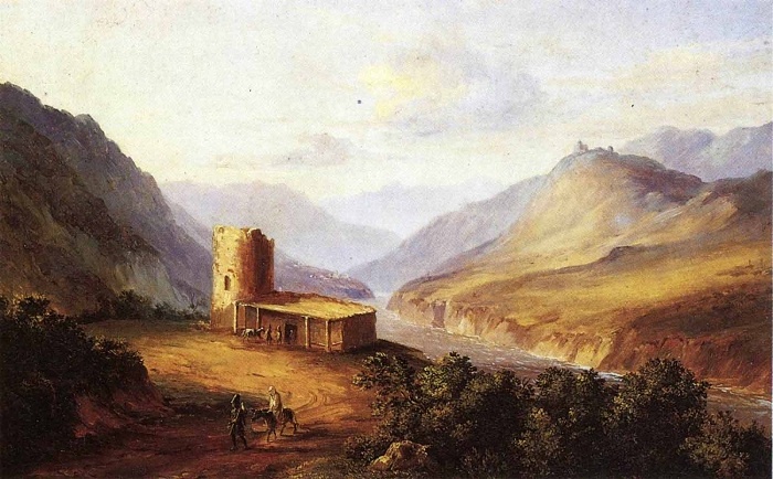 Военно-Грузинская дорога близ Мцхета. Масло. (1837 год). Автор: М.Ю. Лермонтов