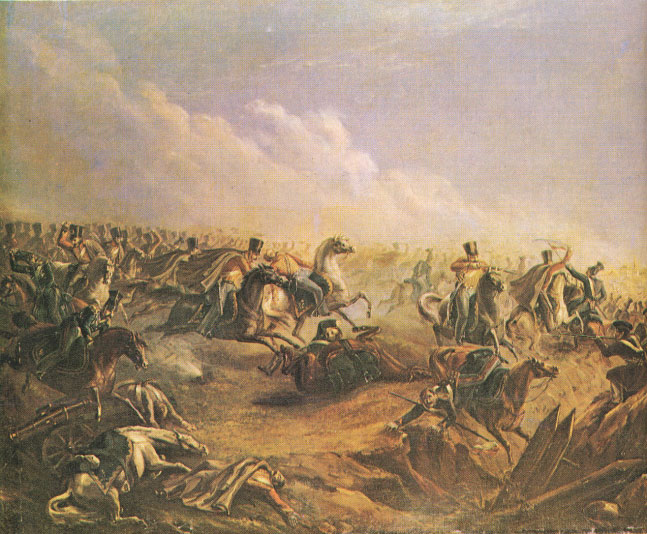 Атака лейб-гвардии гусар под Варшавой 26 августа 1831 года. Масло. (1837 год). Автор: Михаил Лермонтов