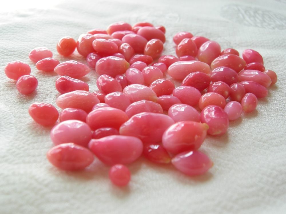 3. Цвет - у Кеши может быть абсолютно любым. Ведь цвет зависит от самого моллюска, который Кеши вырастил. Поскольку отторжение ядрышка может быть у любой устрицы, Кеши тоже может быть любым. Золотые, белые, голубые, розоватые, лиловые, оливковые, зеленые, серые, сине-зеленые - вот неполный перечень цветов Кеши.