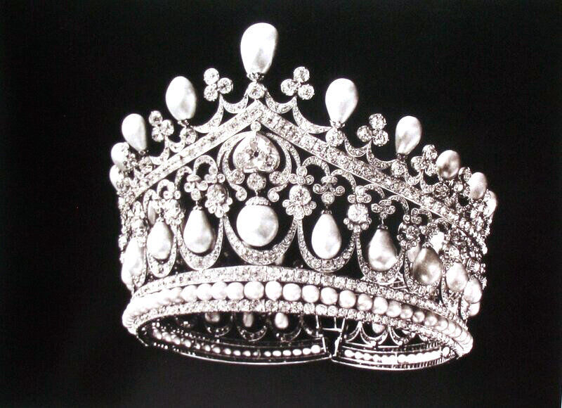 А вот знаменитая диадема из жемчуга императрицы Александры Фёдоровны с 113 жемчужинами. Она была сделана специально для императрицы, с использованием бриллиантов и жемчуга из Кабинета Его Величества.