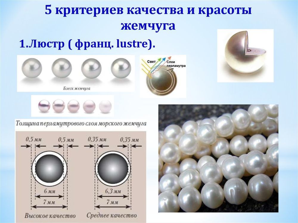 Морской жемчуг ценится толщиной перламутра - он у него наиболее толстый.