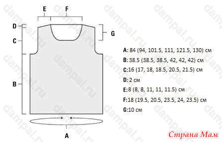 Размеры: Окружность груди – 84 (94, 101.5, 111, 121.5, 130) см.