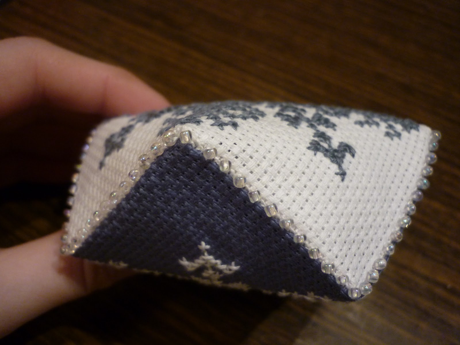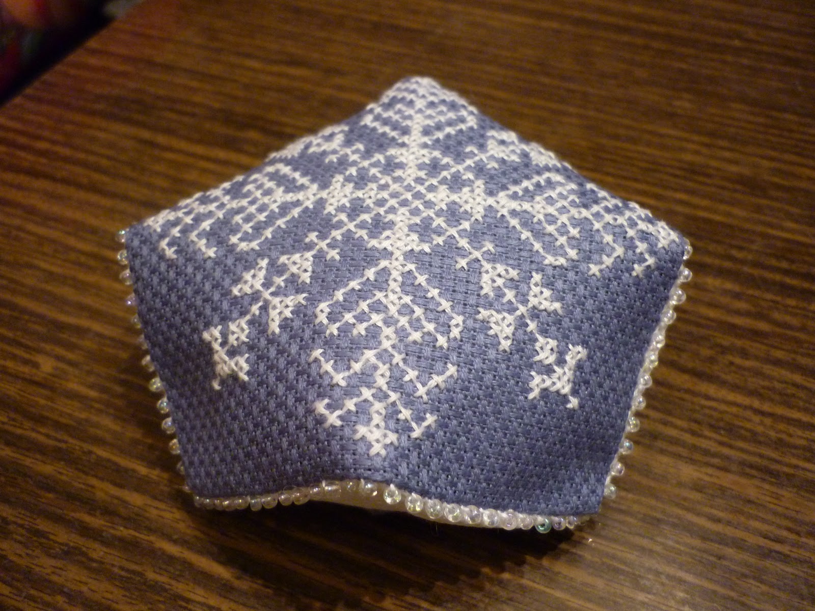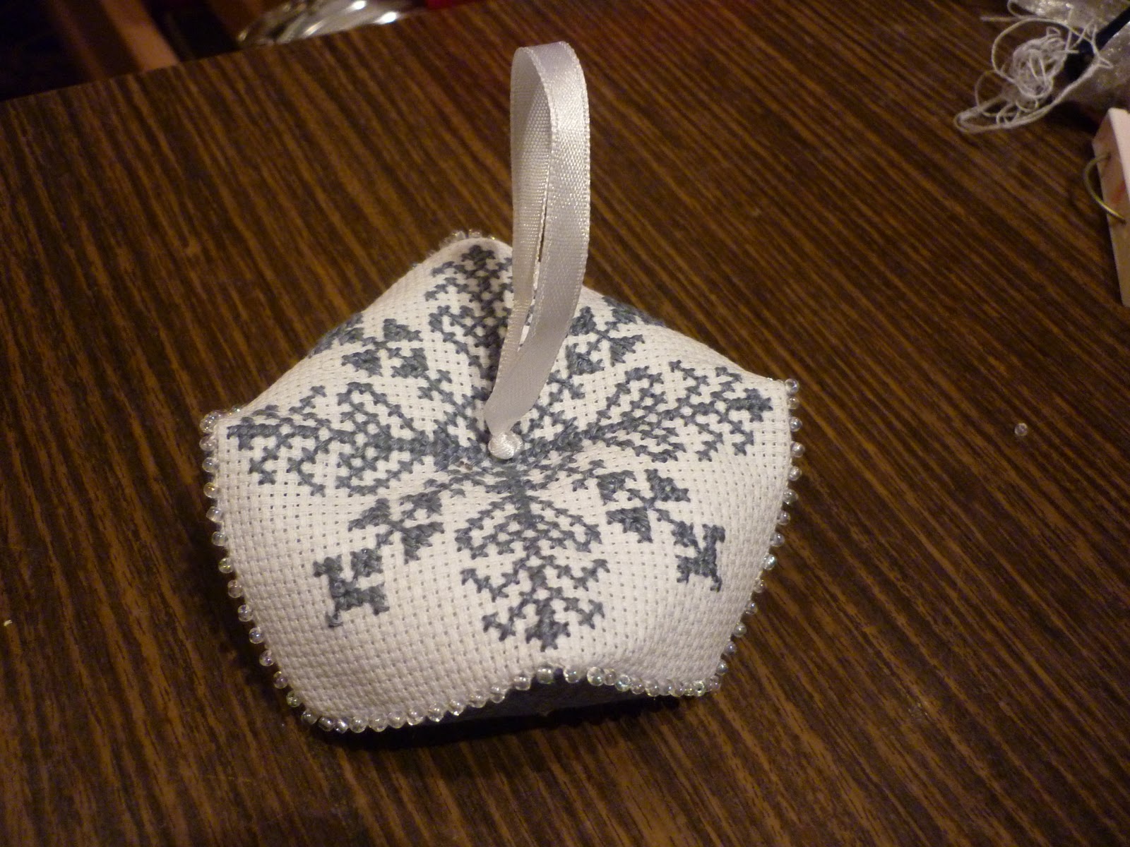 Для красоты я использовала бисер – все-таки снег блестит, и вшивала его через стежок.