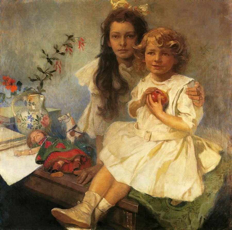 Дочери художника Альфонса Мухи - Ярослава и Джири. 1919 год