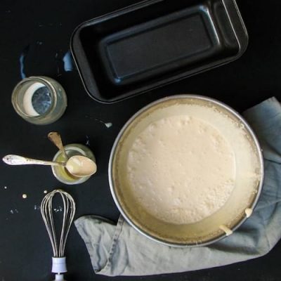 Когда дело сделано, остаётся лишь перелить основу для мороженого в форму, подходящую для замораживания, и накрыть плёнкой.