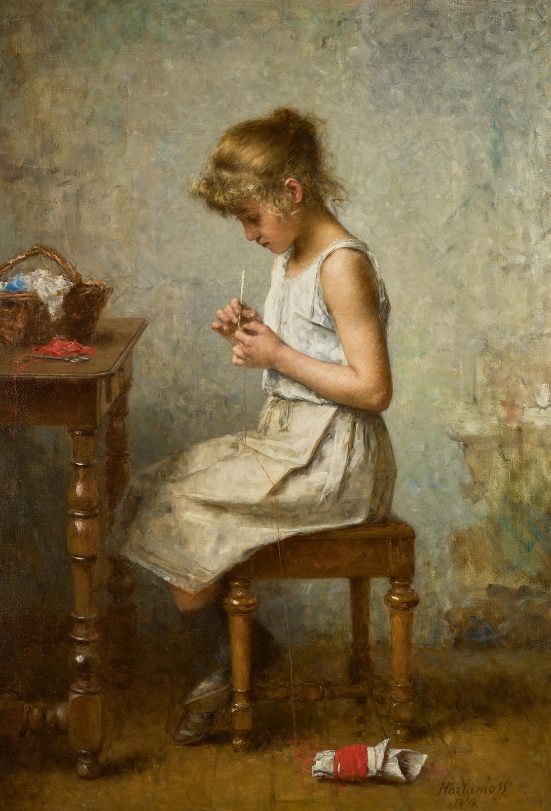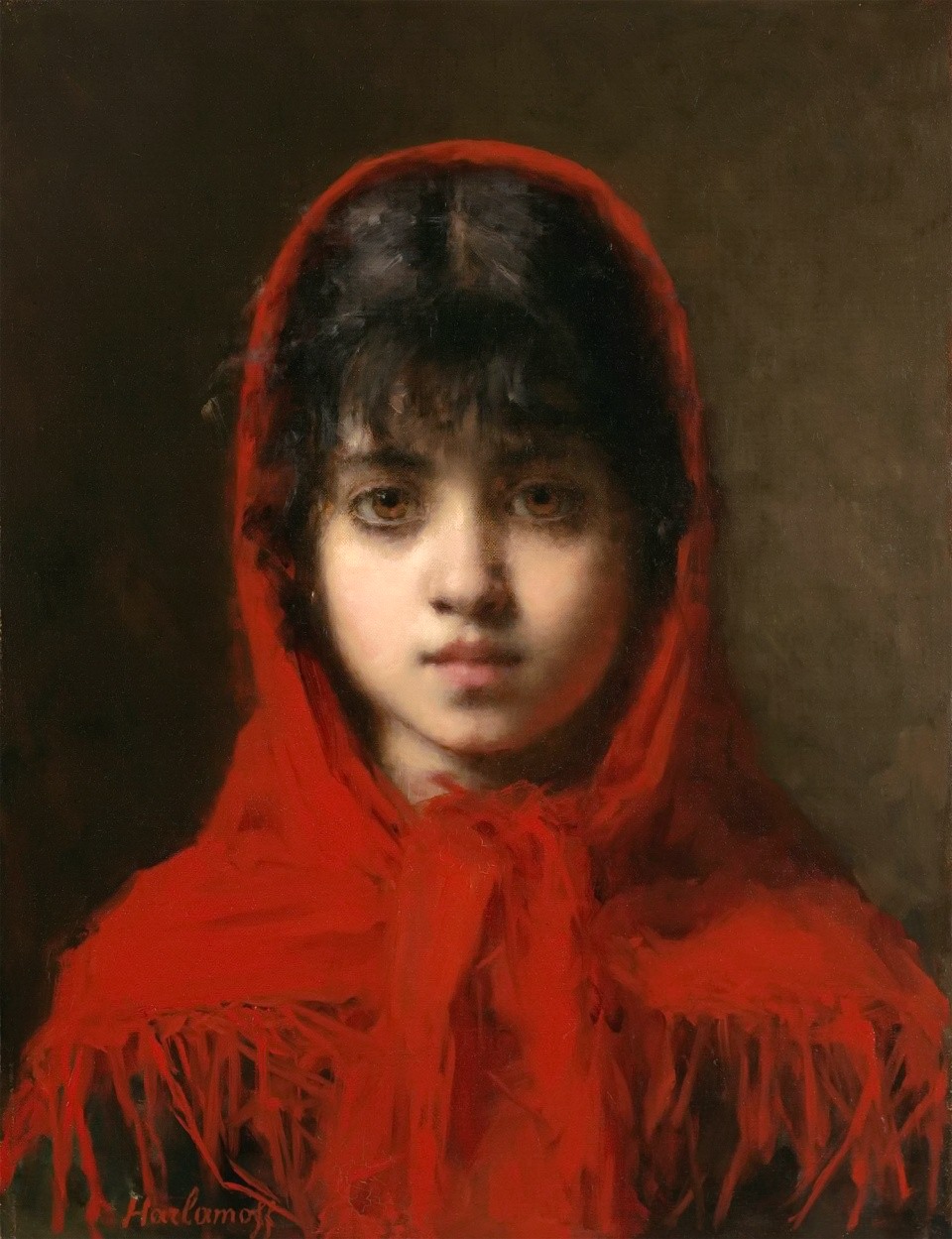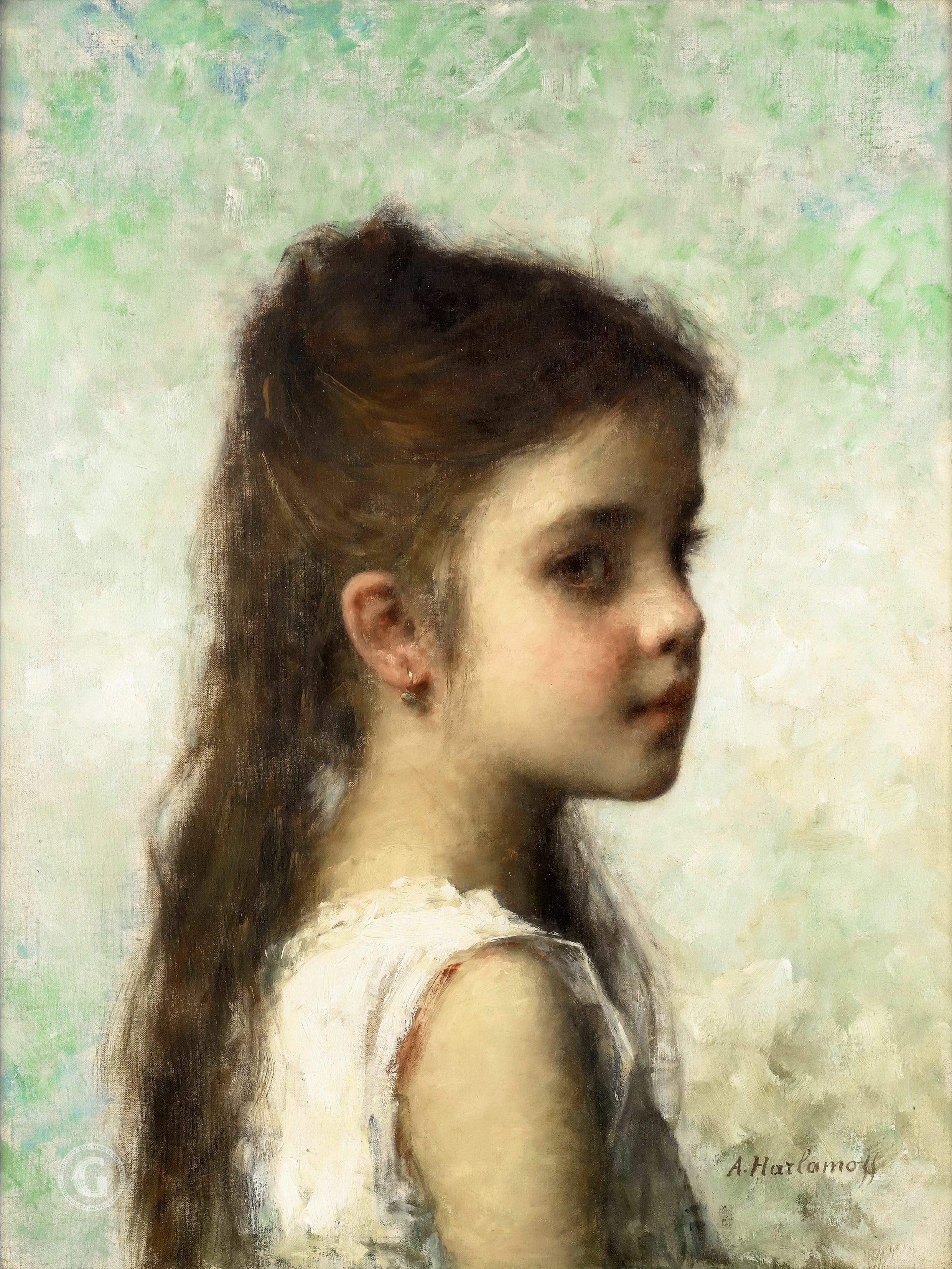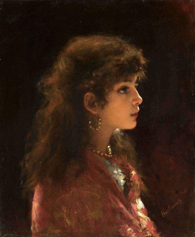 Харламов — один из наиболее заметных русских живописцев второй половины XIX века, добившийся признания не только в России, но и в Европе. Художественное наследие мастера достаточно разнообразно: в нем встречаются портреты, отличающиеся глубиной психологических характеристик, работы бытового жанра, близкие передвижнической традиции, однако наиболее значительную его часть составляют так называемые «головки», созданные в русле салонного искусства того времени и отличающиеся грациозностью и некоторой слащавостью.