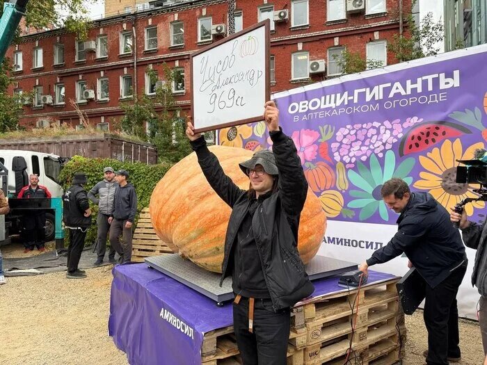 На самом деле Александр представил на конкурс две тыквы из семечек разных генетических линий. Вторая тыква весила чуть меньше, 961 кг. А её семечка обошлась фермеру в 120 тысяч. И не факт, что она бы вообще проросла!