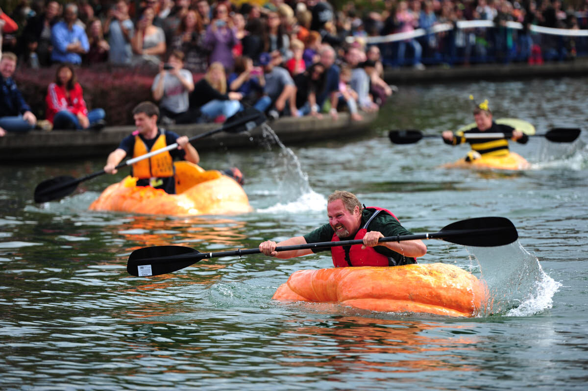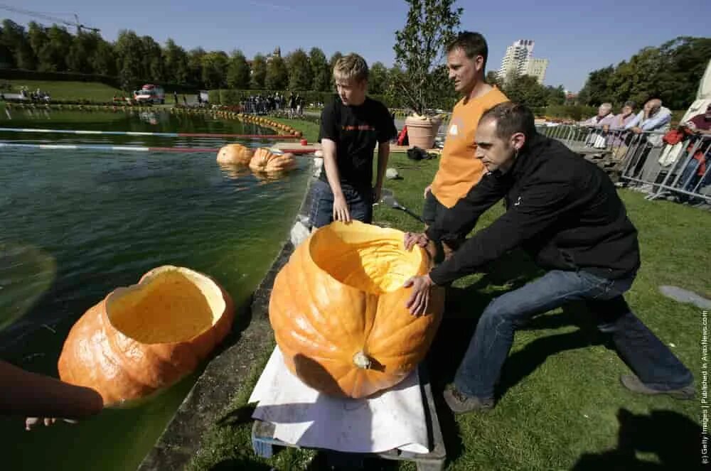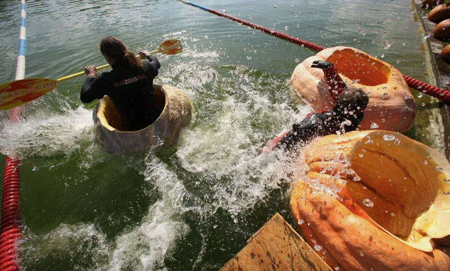 Золушка ездила в тыкве, а они плавают! Ежегодно в ряде европейских стран и Америке с размахом отмечают Хэллоуин и проходят тыквенные фестивали, приуроченные к праздникам урожая. Частым атрибутом таких гуляний становятся регаты, где смельчаки соревнуются, демонстрируя ловкость в управлении тыквами.