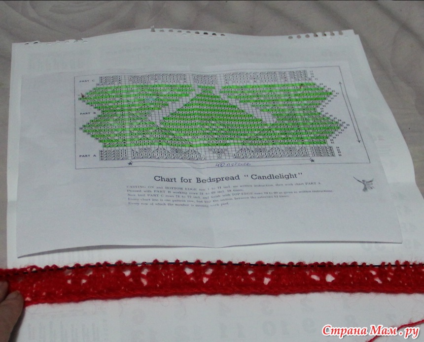 По схеме видим, что рапорт состоит из 40 петель, и для каймы, с одной стороны 5 петель + 1 кромочная, с другой стороны 6 петель + 1 кромочная.