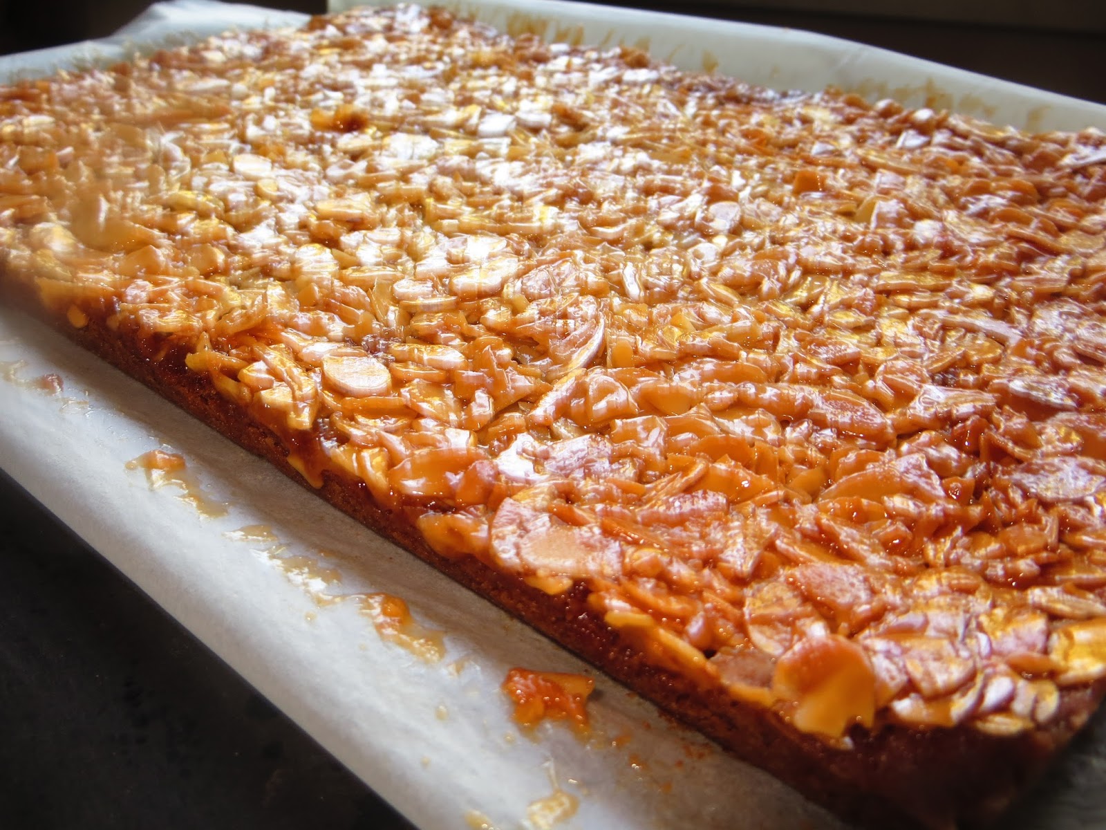 Засыпать хлопья миндаля и тщательно перемешать. Слегка охладить