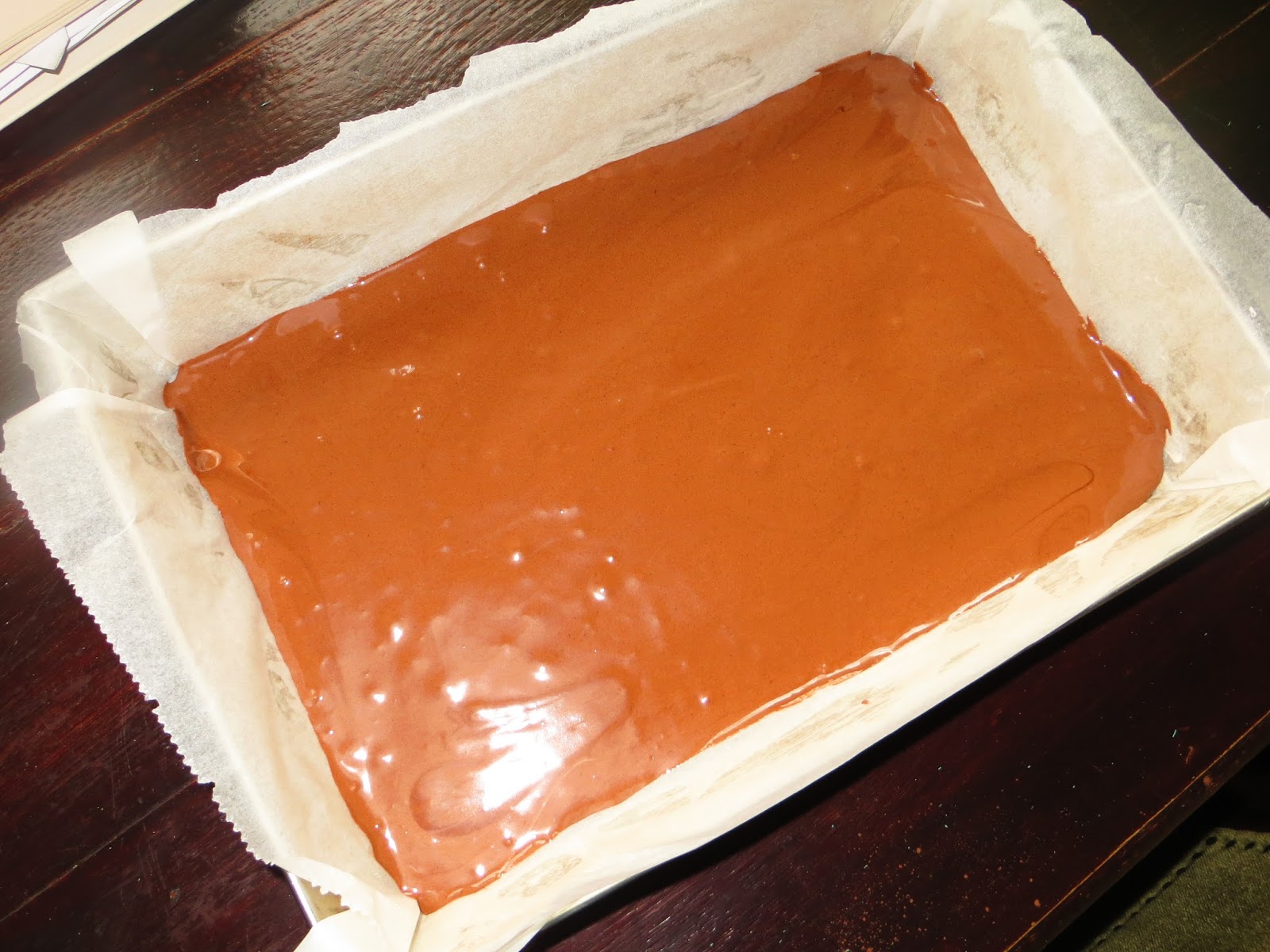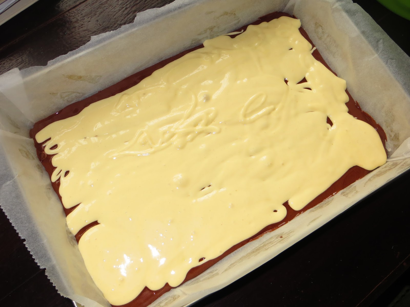 В форму вылить шоколадное тесто: