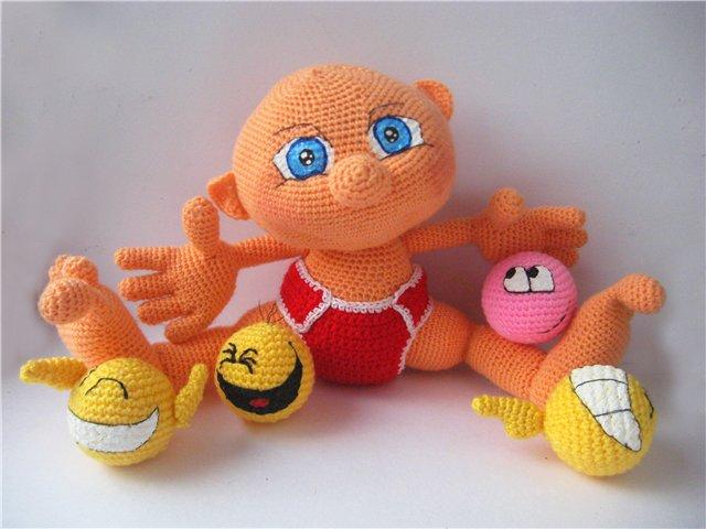 Что будет нужно:я брала пряжу пехорка "детский каприз"-2 моточка по 50 гр,крючок №1(или 0,75)Можно брать любую ниточку какая вам нравится,крючок подбирайте нужный тогда сами,если нитки будут толще,то и малыш может получится в натуральную величину