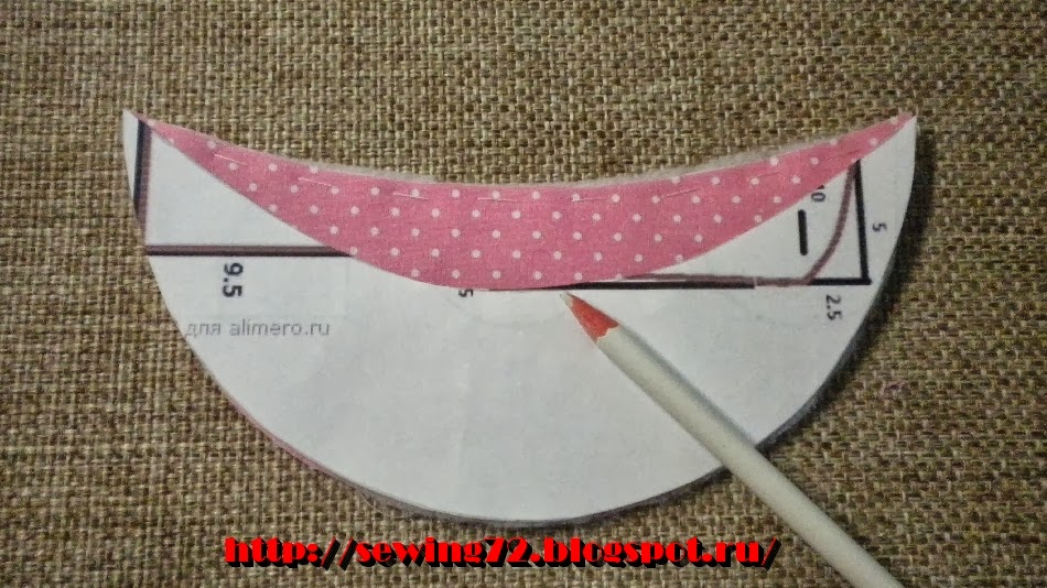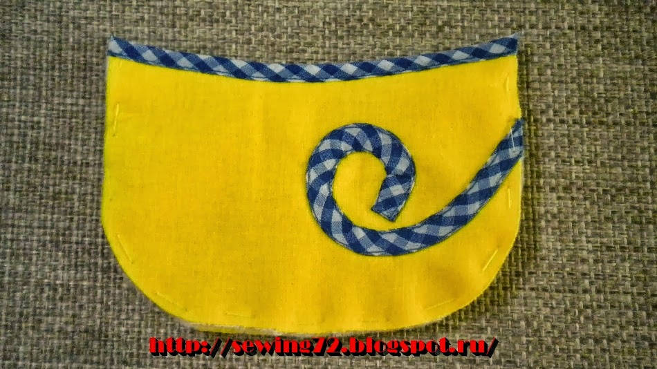 10. Берём детали кроя хвостиков и настрачиваем тесьму.