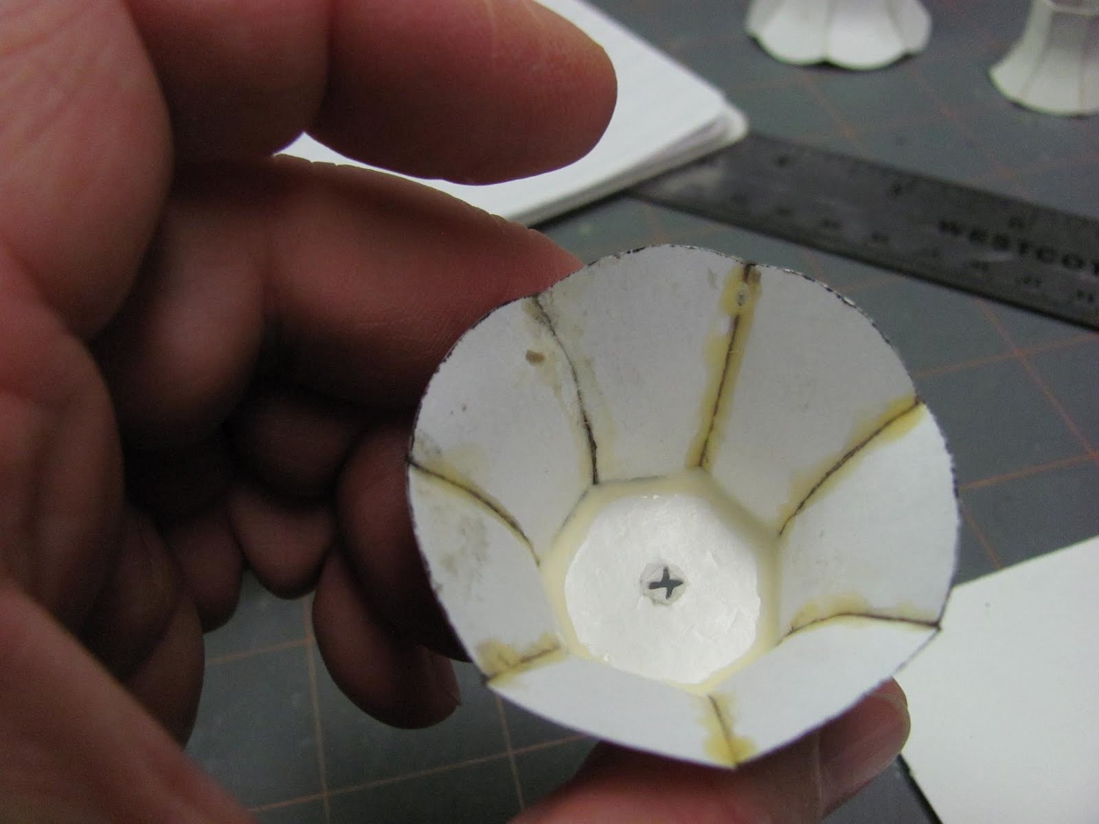 Я дал образцы, но с учетом характера компьютеров это, вероятно, не собирается копировать вас в размере, я использую. Скопируйте шаблон в программу, Вы сможете изменить его размер. Размер я использую для торшера является: 1 3/8 дюйма дюймов высотой, 7/16 дюйма шириной в верхней и 3/4 дюйма шириной в нижней части. Существует также линия 3/16 дюйма сверху вниз. Это линия для склеивания центра. Это большой абажур. Если у вас есть это в программе, что вы можете изменить размер с вами можем сделать любой размер тени. Я скопировал мою форму картины в моей старой типографии 15 программы и вставлять кучу, чтобы соответствовать 8 1/2 х 11 лист карточки . Как я уже говорил прежде, чем я обычно делаю абажур из постеров и когда клееного это штопать возле нерушимой. Вы должны следить за образец форму семь раз в тени, когда сайт плате используется так я использую карточки здесь. С карточки можно пройти через принтер проще скопировать и распечатать их, а затем просто вырезать узор из форм. Заметка о центре, я сделал это с 1 дюйм круг, используя круг шаблон. Я тщательно измерены 7/16 дюйма по кругу 7 раз и обратил прямой линии между марок я по кругу. Я скопировал эти на карточки, тоже. Прежде чем использовать его в абажур я склеивал центре на сайт доски, хотя. В центре должна быть жесткой, она собирается дать форму тени. После того как вы получили вашу моделей распечатать, вырезать образец формы 7 и 1 центра. Убедитесь, что в верхней части каждой картины фигура не так же, как каждая сторона в центре. Чтобы склеить карточки вместе использовать желтый клей для дерева, Элмер столярного клея или клея Titebond оригинала Вуд. Мы хотим, чтобы тени, чтобы быть жестким, когда мы сделали, а не гибкий. Я использую желтый клей для дерева, потому что это захват и сохнут быстрее, чем белый клей. При склеивании тени шаблон формы вместе убедиться, что линия центра будет внутри готового тени. оттенок вспышек на дне , подобрать один шаблон формы и осторожно потереть пальцем над ним слегка согнуть, не возрастет. Нанесите клей на обоих краях и в то время как изгиб шаблон формы бодаться края вместе и удерживайте кнопку. Я знаю, что можно получить шаткий, иметь терпение, она работает. Желтый клей не займет много времени, чтобы власть, может быть, минуту, это не сухой, но он застрял и может оторваться. Помните, что бодаться по краям и не перекрывать их. Клей 2 формы картины вместе в то время, вы будете иметь 1 шаблон формы остались, оставьте его на данный момент. Нанесите линию клея внутрь швов. Пусть эти сухие немного , может быть, час. Я позволить им высохнуть в течение ночи, пар рисовать вместе немного, и я должен распределить их друг от друга. Это не повредит им, просто больше работать. Вы должны иметь 3 пары и 1 остались форму. Клей 2 пары вместе и приклейте на левую форму до последней пары. Нанесите линию клея внутрь швы и дайте высохнуть снова. Клей 2 половинки вместе в один шов, нанесите клей для внутренних швов и дайте ему высохнуть. При том, что шов высохнет, клей последний шов вместе. Не беспокойтесь о форме еще. Когда центр вставляется в верхнюю форму будет меняться и расслабиться вокруг центра. Если у вас не клеится в центре на кусок плаката борту еще, сделайте это сейчас. В зависимости от того, что вы собираетесь использовать, чтобы держать ваш тени с, пробить отверстие в центре центра. Поскольку я собираюсь испо