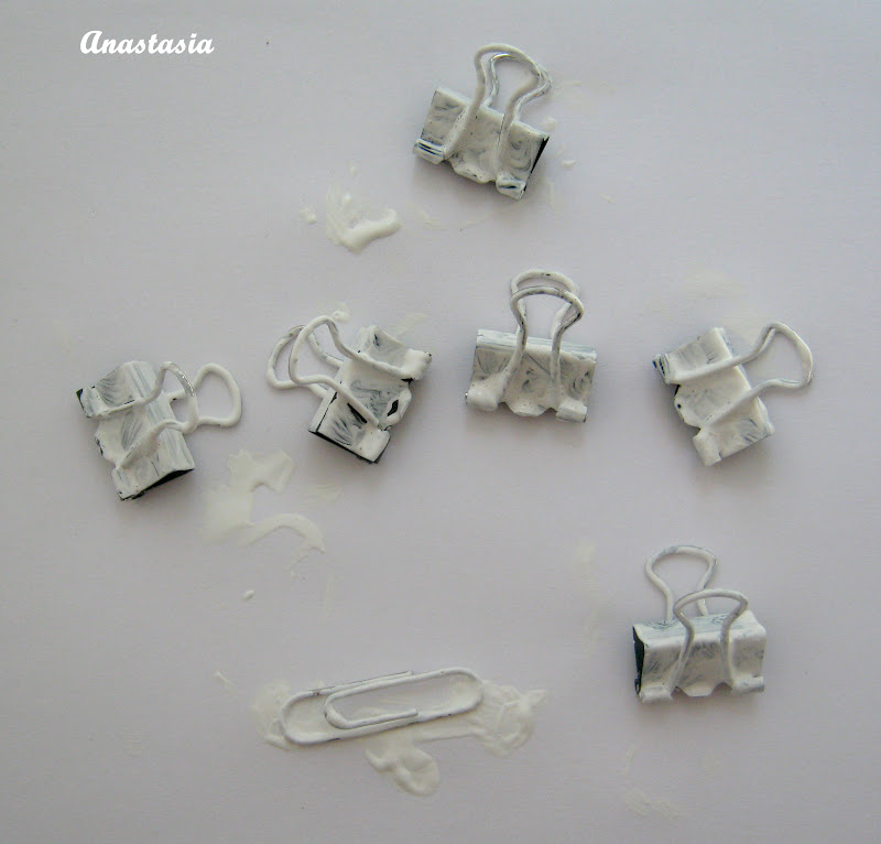 После полного высыхания нужно подумать как же все это удовольствие скрепить, да так что бы листочки можно было менять или убирать по мере надобности. Тут нам на помощь приходят обыкновенные канцелярские скрепки и маленькие зажимы. Именно они обеспечат нам подвижность наших листков))) Для дней недели я использовала 6 зажимов, для календарных месяцев скрепочку.