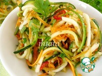 Хочу предложить вкусную, сочную, острую, пикантную закуску (салат) из молодого цуккини и моркови. Готовится очень легко, прекрасно сочетается с печеным или отварным мясом. Рецепт полностью...