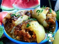 Эти перчики мне довелось попробовать в одном из московских "Кафе", которому больше подходит определение "Столовая". И взяла я его, только чтобы перекусить чем-то легким, но как я была удивлена, когда поняла что это очень вкусное и простое блюдо! Поискав рецепты фаршированных перцев на просторах сети, так и не нашла похожего. По вкусу перцы напомнили мне любимую тетину икру из баклажан, которую она заботливо готовит для нас с папой, когда мы прилетаем погостить к морю в с. Дивноморское. Потому отталкивалась я от него, а что получилось, очень рекомендую полюбопытствовать и заглянуть в сам рецепт... Рецепт полностью...