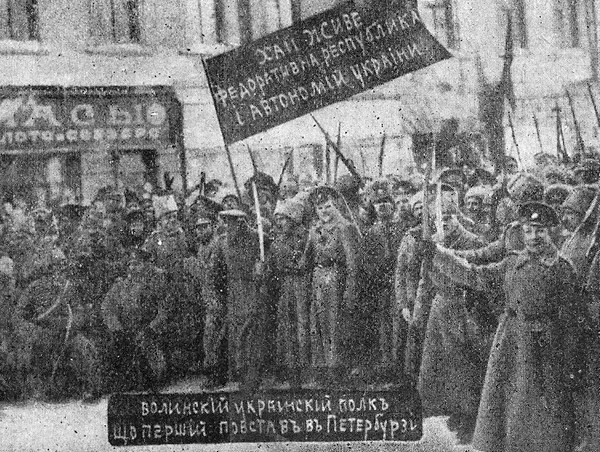 У 1917 році українці з колишніх царських гвардійських полків вільно проводили озброєні демонстрації під синьо-жовтими прапорами у столиці росії. Навіть, на легендарній "Аврорі" діяла організація матросів-українців