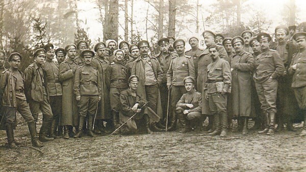 Південно-західний фронт – вересень, 1917 рік. Старшини полку ім. Богдана Хмельницького із начальником 10-ї піхотної дивізії, до складу якої входив полк, генерал-майором Віктором Гальфтером. ФОТО: Книга Я.Тинченка "Армии Украины: 1917-1920", москва, 2002