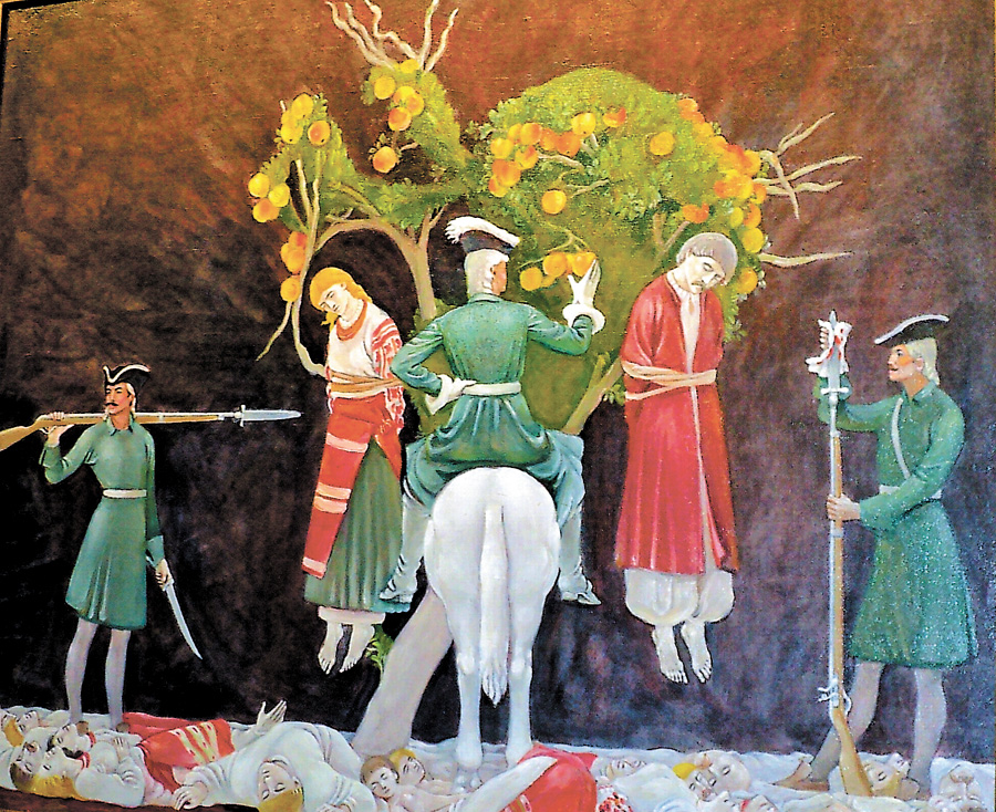 Цей приклад нелюдської жорстокості пізніше використовували царська охранка і нелюди з НКВД. Нащадки лебединських катів – лєніни, сталіни, кагановичі і берії довгий час колесували Україну