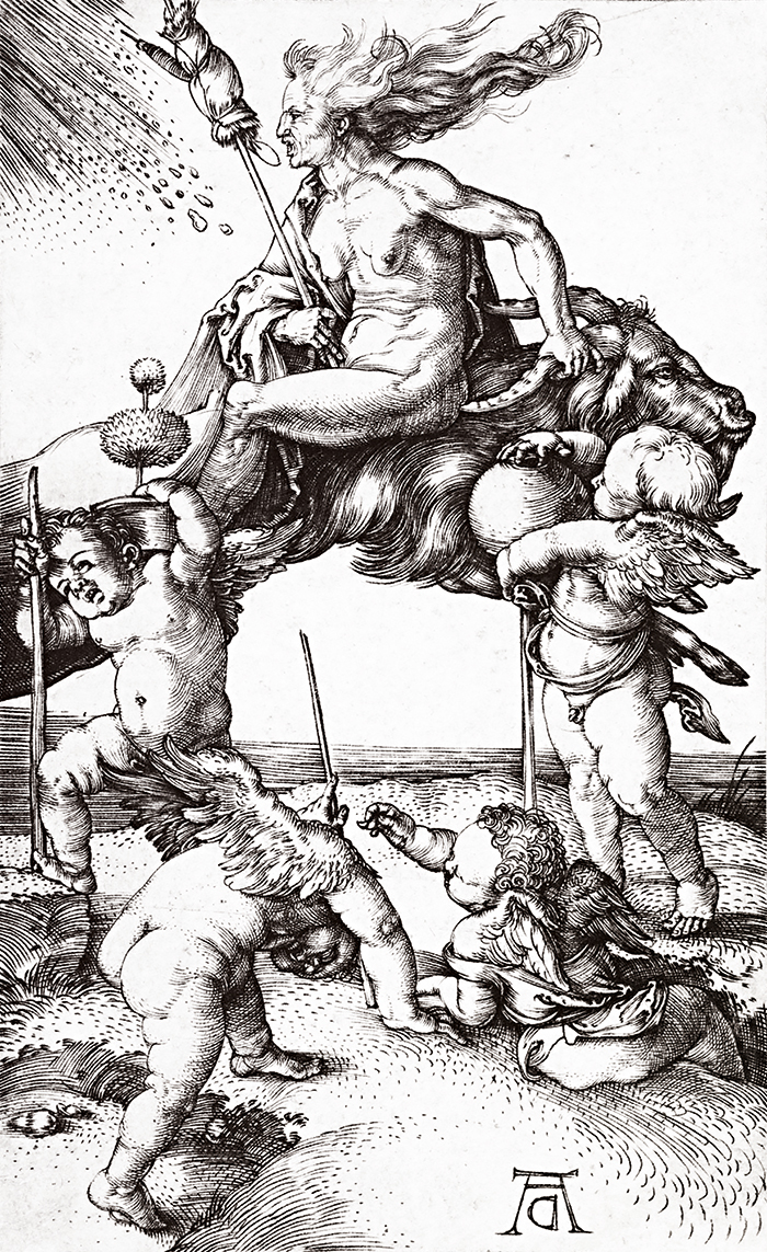 "Ведьма, скачущая задом наперёд на козле". Альбрехт Дюрер, гравюра, 1500 г.