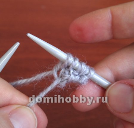 Так же как в первый раз из * первой петли вывяжите 2 лицевые петли из передней и задней стенки, 2 лиц. п. Прибавится еще 1 петля.