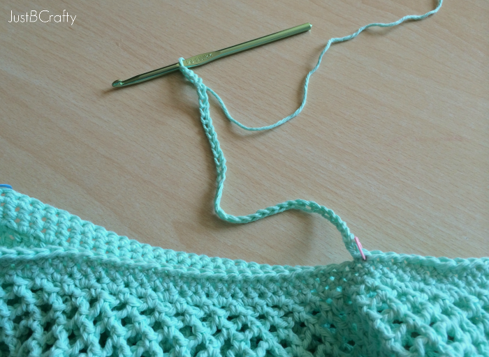 Вязать дальше сбн до другого маркера, снова 35 вп и сбн в 25 петельку от маркера , подобно, как в случае с первой ручкой. Вязать сбн до конца ряда
