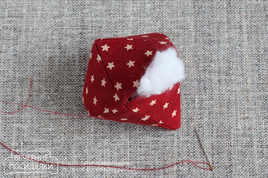 9. Прервите работу, оставив небольшое отверстие, и набейте сосульку, используя тонкую палочку. Сшейте детали до конца.