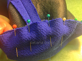 8. Вколоть рукав , совмещая метки и распределяя посадку в манере указаной выше (рис 3)