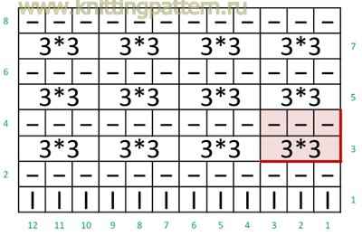 3*3 - 3 петли провязать вместе изнаночной с последующим прибавлением (изнаночная, накид, изнаночная)