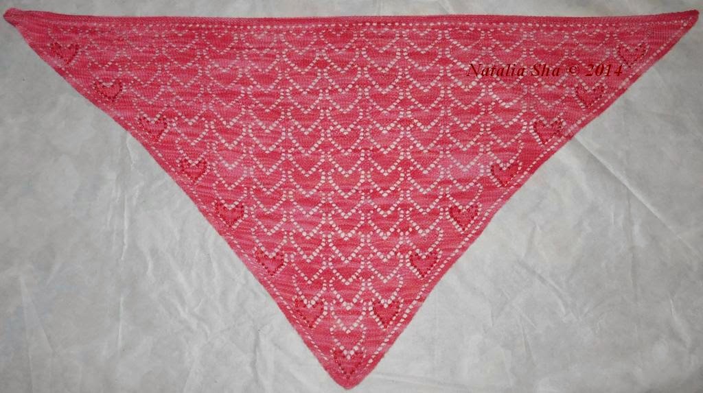 Обрываем нить, прячем-заделываем все кончики, готовую шаль стираем и, слегка отжав (не выкручивать!!!), выкладываем на ровную горизонтальную поверхность.