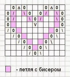 Вы можете вязать с бисером все сердечки. Или только те, что расположены по краям, у кромки.