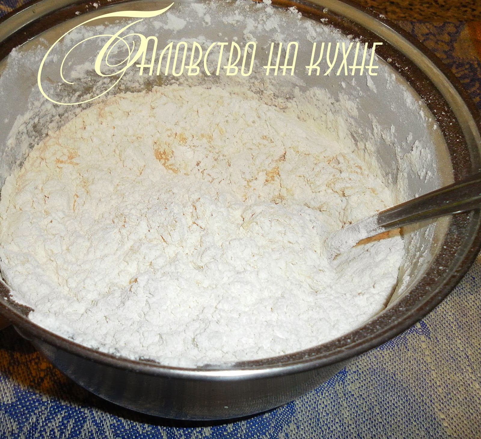 Добавить муку и замесить гладкое тесто.