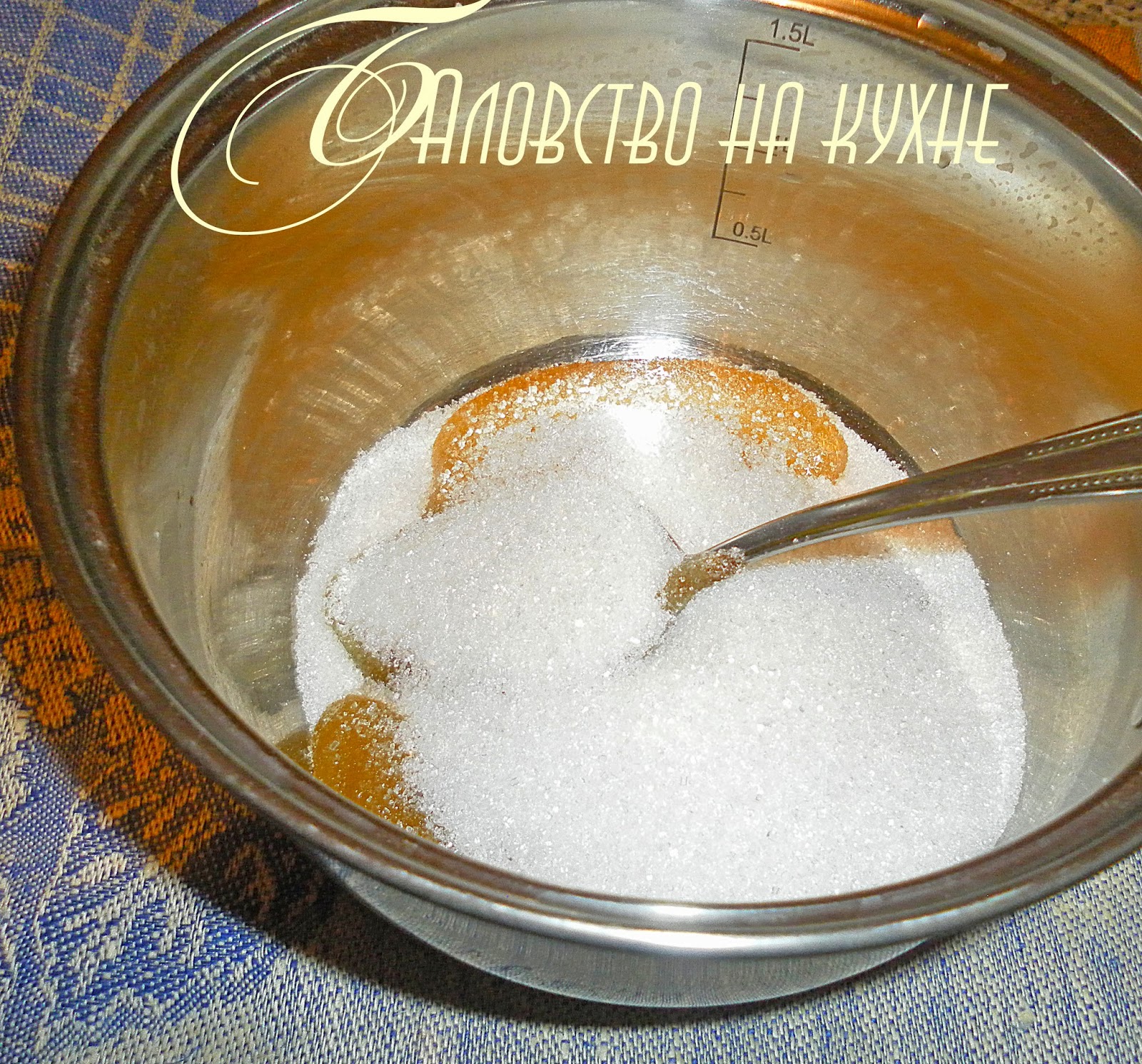 Мёд,сахар слегка подогреть и размешать.