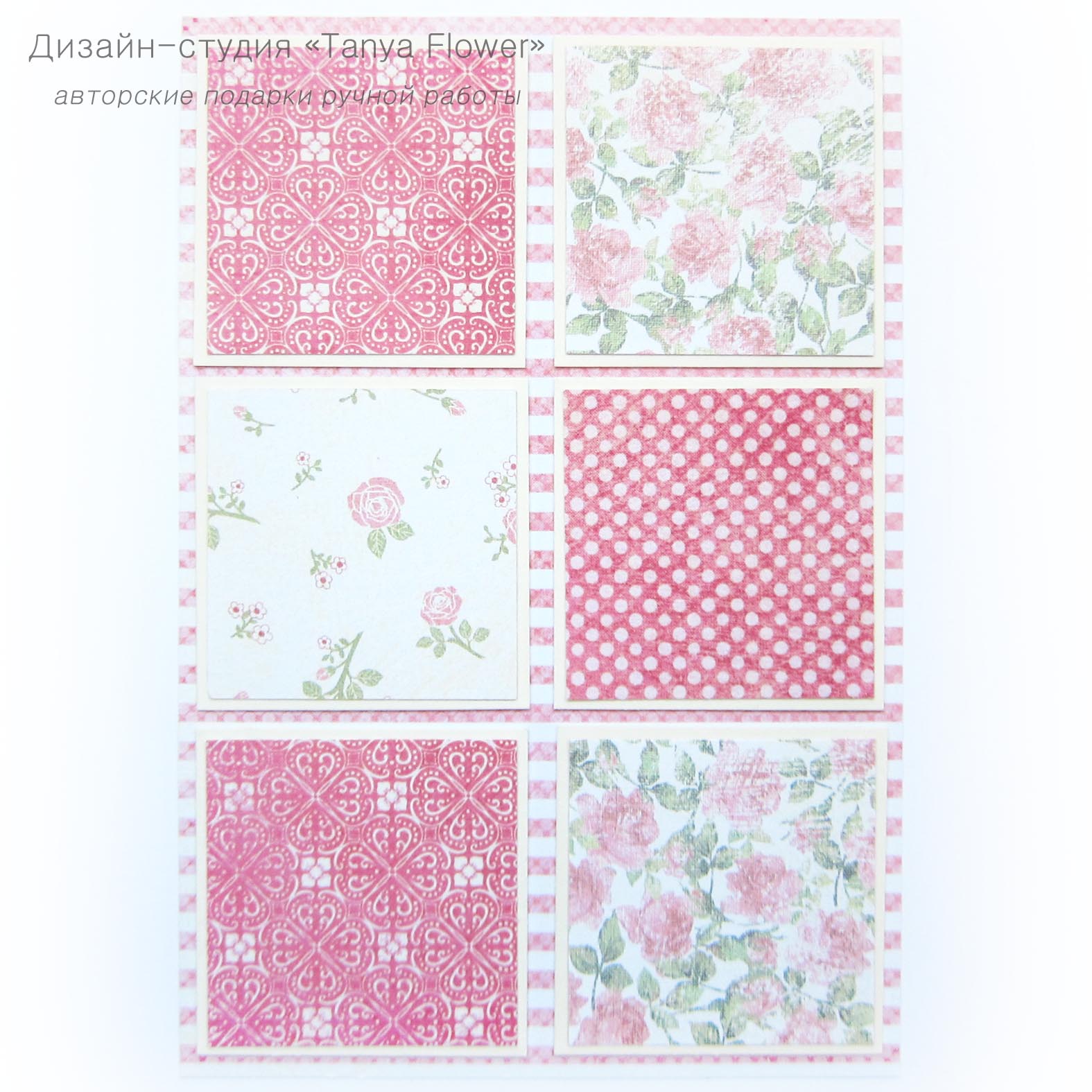 Из скрапбумаги вырезаем 6 квадратов со стороной 4 см.