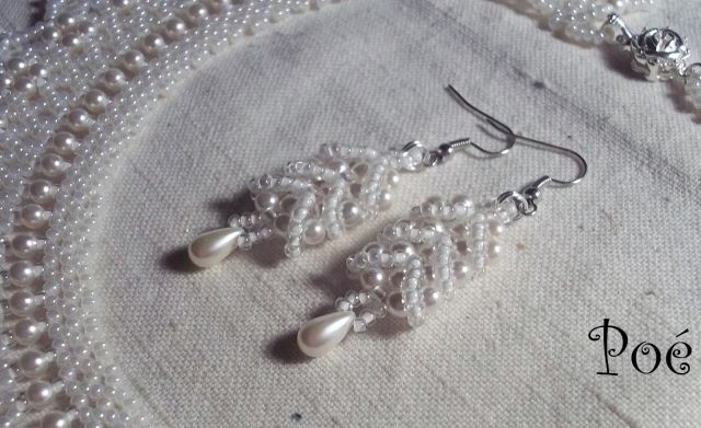 Потрясающе красивый белоснежный комплект из бисера и жемчуга, мне кажется такое украшение хорошо подойдет к свадебному наряду, да и вообще к любому наряду, потому как белый цвет подойдет к любому, и выглядит бижутерия не дешевой за счет жемчужного блеска. Мне очень понравилось, обязательно сделаю себе такое. Можно попробовать вместо белого использовать розовый бисер, думаю, будет красиво.