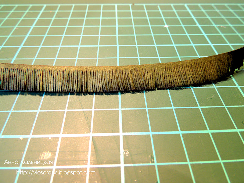 До тех пор, пока длина веточки не составит 4 см. Тогда мы отрезаем оставшуюся часть полоски с бахромой.