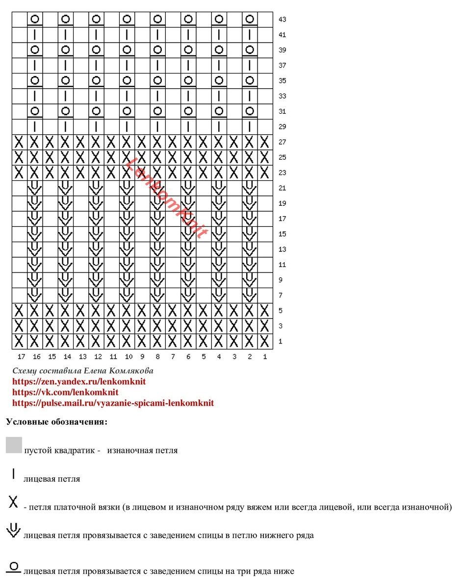 Раппорт узора в ширину - всего две петли. А в высоту эти три вида узоров чередуются, все они нарисованы на схеме.