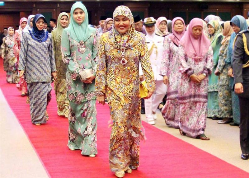 Что там ювелирные украшения, вы на платья посмотрите Хафизы! Это же настоящие произведения искусства. Ручная кропотливая работа, шитье золотыми и серебряными нитями, отделка бусинами пайетками. Браво рукодельницам Брунея.