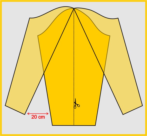 Вырезать основание рукав, в середине;