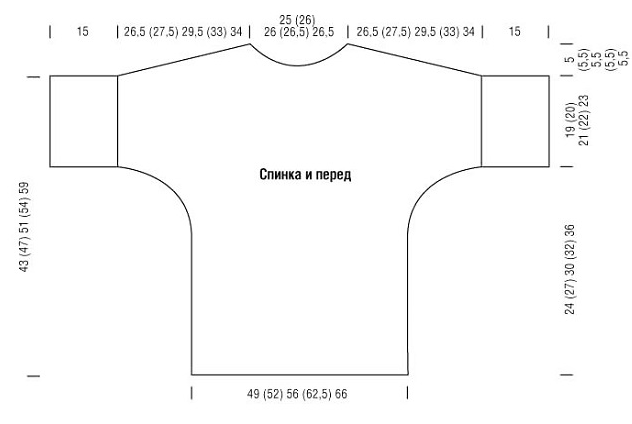 горловины спинки набрать 25 (25) 26 (26) 27 п. = 162 (166) 170 (174) 182 п.