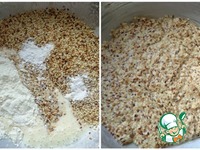 В яично - масляную смесь добавить кунжут, муку, ванилин, разрыхлитель. Тесто вымешать. |