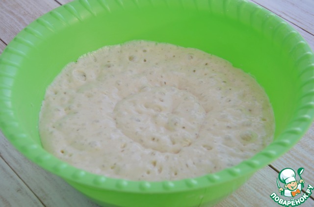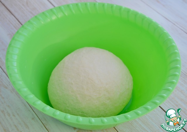Оставить тесто на расстойке 1 час, вот так оно увеличится. |