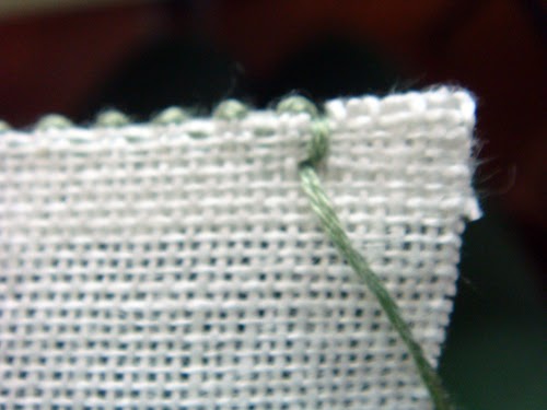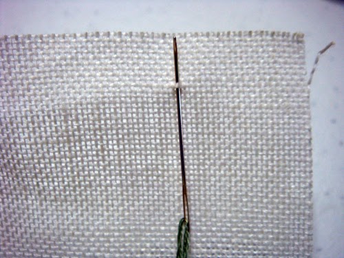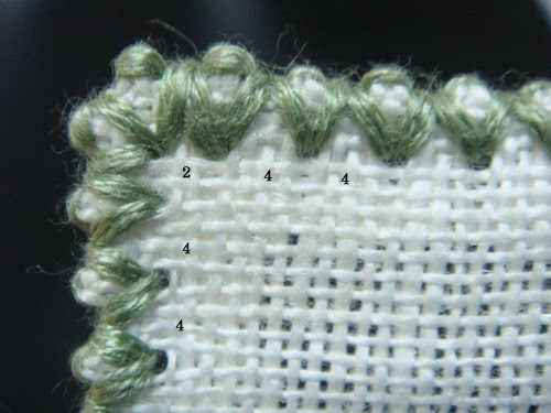 在 點 往左 四 根 紗 的 B 點將 針 穿出