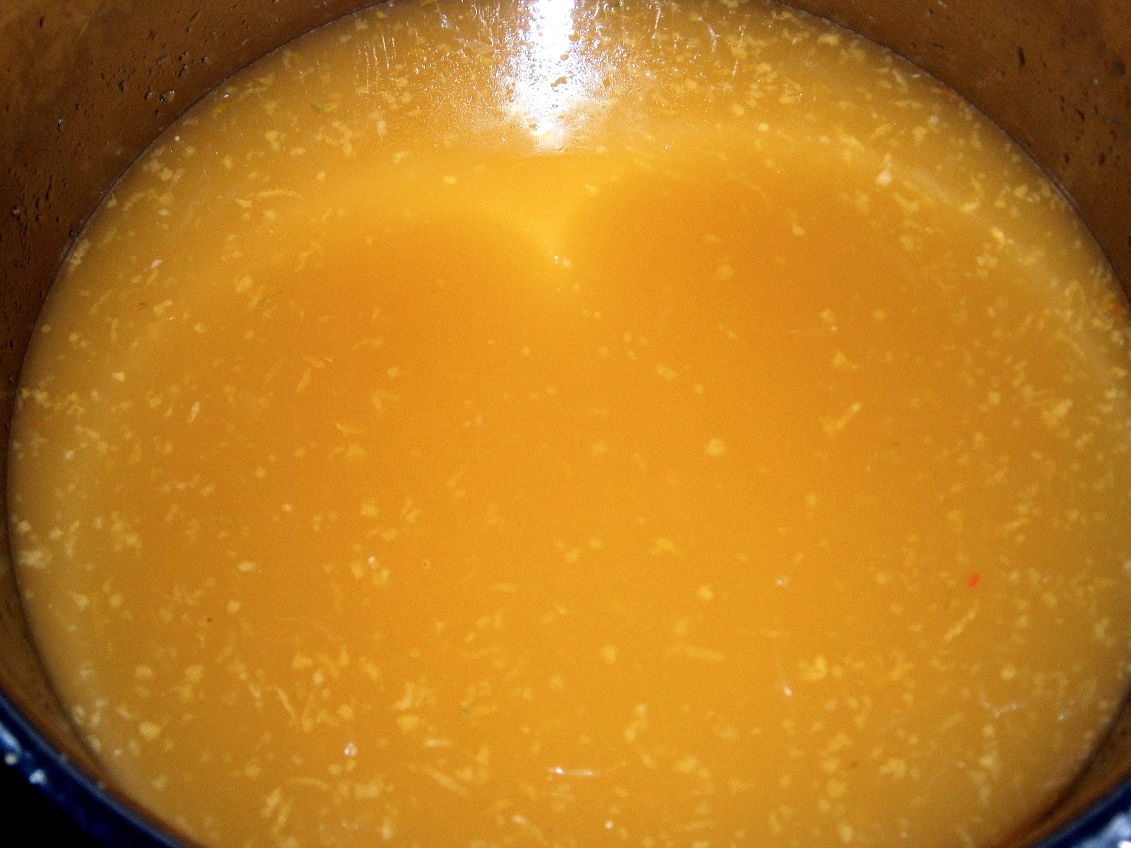 В сироп, в котором варился имбирь, налить 500 мл апельсинового сока, добавить натёртую цедру 2-3 лимонов и сок 3 лимонов. Вскипятить, если сироп жидкий - добавить дополнительно сахар. Процедить через ситечко и разлить по стеклянным баночкам или бутылкам.