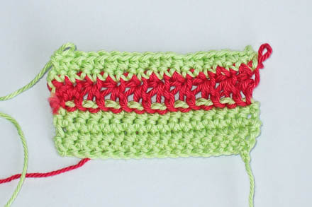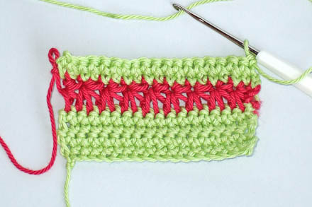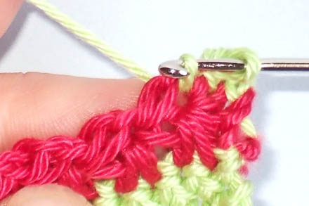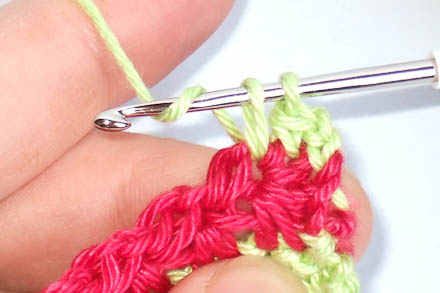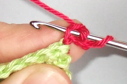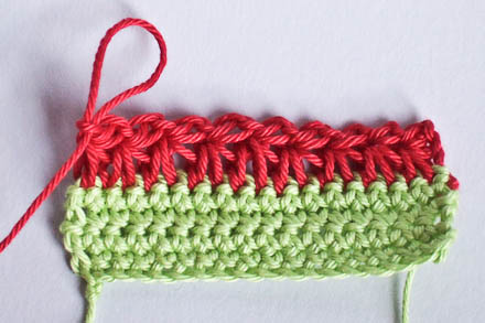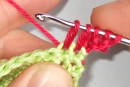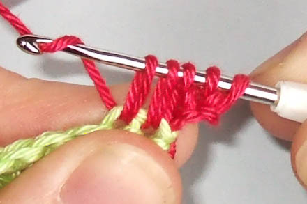 ввести крючок в первый столбик ряда - вытянуть петлю
