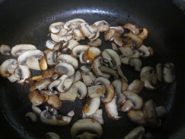 В небольшом сотейнике обжариваем грибы на растительном масле до золотистого цвета, примерно 4 минуты.