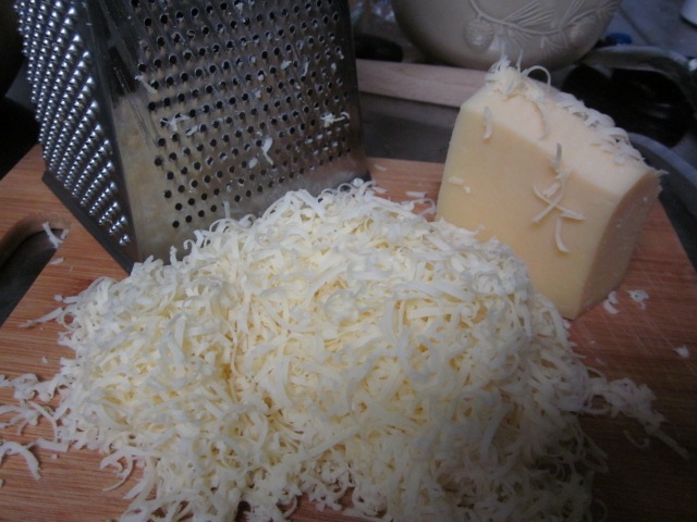 Пармезан трем на мелкой терке.